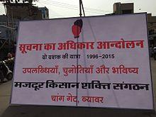 The Mazdoor Kisan Shakti Sangathan (Association for the Empowerment of Labourers and Farmers) is an Indian political organisation best known for its demand for the Right to Information Act (RTI) which grew out of the demand for minimum wages for workers.[1]