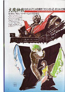 In the 1980s, on behalf of Dynamic Planning, Masami Ōbari and other independent animators (Toshiki Hirano) not part of Toei Animation began work on a miniseries of Mazinger Z. The OVA (Original Video Animation) would have been called Dai-Mazinger (or Daimajinga, 大魔神我) and would have presented the same characters known to the general public, starting with the main protagonist Koji. The robot would be more realistic: for example, it would have exhaust pipes and its rocket fists would not be able to automatically return to its arms.[6]