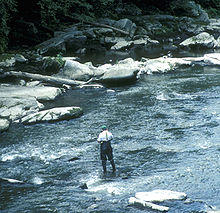 Whitewater boating is very popular on this part of Slippery Rock Creek and it is rated a Class II-III, on the International Scale of River Difficulty, depending on water conditions. Boating usually begins at the U.S. Route 422 bridge at Rose Point, outside the park boundary and passes under Eckert Bridge within the park before ending at Harris Bridge. There is a portage at the dam at the Old Mill. It is illegal to "run" the dam. All boaters are required to wear life jackets that are approved by the United States Coast Guard.[3]