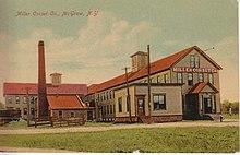 Originally it was called McGrawville, and that name appears on an 1855 map,[6] but it was officially incorporated as McGraw in 1869. (There is a hamlet McGrawville further west in Allegany County, New York.) In the 19th century the community styled itself as "Corset City" for several decades of corset manufacturing. P.H. McGraw & Son produced corsets in the 1880s until mismanagement of an unrelated produce business led them to sell their interests to the Warner Bros. of New York,[7] later known as the Warnaco Group. The factory was reopened and incorporated as the McGraw Corset Company in 1890 and employed over 400 men and women in the area.[8] In 1901, William J. Buchanan, a former employee of both the P.H. McGraw & Son and McGraw Corset Company, founded the Empire Corset Company. The Empire Corset Company was known for the “Never Rust” corset, the “Sorosis” and the “Reduzyou” styles, and sold internationally. They employed 215 women and 35 men. In 1910 the company manufactured one hundred thousand dozen corsets. The McGraw Corset Company was the largest industry in the area, employing over 400 men and women in the factory and, additionally, providing women in the area piece work to do in their homes.[9] Simultaneously, the village was home to the Vesta Corset Company and the Miller Corset Company.