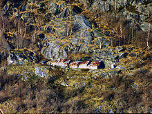 Me-Åkernes or Midtre Åkernes is a deserted fjord farm on the slopes of Åkerneset mountain along the northern shore of the Sunnylvsfjorden (an inner branch fjord of the Storfjorden) in Stranda Municipality in Møre og Romsdal county, Norway. It is located 13 kilometres (8.1 mi) northeast of the village of Hellesylt.[1] The farm is located in the West Norwegian Fjords Norwegian World Heritage Sites and has been preserved both for its unique geologic siting and as a representative of typical Norwegian farm culture in the fjord regions.[2] This geologically unique farm has also been identified as the model for the farm place appearing in Henrik Ibsen’s play Brand based on the similarity in the description and his visit there on 16 July 1862: