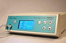 Mechanical ventilation, assisted ventilation or intermittent mandatory ventilation (IMV), is the medical term for artificial ventilation where mechanical means are used to assist or replace spontaneous breathing.[1] This may involve a machine called a ventilator, or the breathing may be assisted manually by a suitably qualified professional, such as an anesthesiologist, registered nurse (RN), paramedic or other first responder, or in some parts of the United States, by a respiratory therapist (RT), by compressing a bag valve mask device.