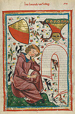 The first Dutch language writer known by name is the 12th-century County of Loon poet Henric van Veldeke, an early contemporary of Walther von der Vogelweide. Van Veldeke wrote courtly love poetry, a hagiography of Saint Servatius and an epic retelling of the Aeneid in a Limburgish dialect that straddles the Dutch-German language boundary.