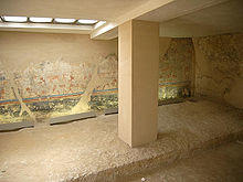 Meir was the functioning cemetery for Cusae, located in Egypt, approximately thirty to forty miles north of the city of Asyut. Meir functioned as an Old Kingdom–Middle Kingdom (6th–12th Dynasty) cemetery for the nomarchs of the fourteenth Nome of Upper Egypt. Below the hillside of the rock-cut tombs lies a cemetery that is specifically for the more common folk. The rock-cut tombs only functioned for nomarchs of the city of Cusae, which was a cult center for the Egyptian deity Hathor. Proof of Hathor worshiping was found on inscriptions on the walls of the rock-cut tombs, which included numerous mentioning of the priestesses of Hathor as well as numerous depictions of cows. Aylward Blackman was the primary excavator of the site and as a result he published six volumes of work pertaining to his findings. The tombs are laid out North to South along a hillside and Blackman labeled the chapel-tombs A-E. Meir is known to have one of the richest sources of Middle Kingdom tombs.[1] It is also known for the tombs having extremely detailed reliefs illustrating daily life scenes. Examples of well excavated tombs of this site include the tombs of Ukh-Hotep and Pepyankh the Middle.