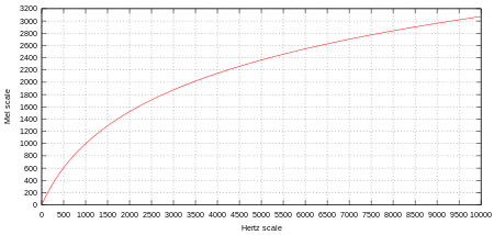 The mel scale, named by Stevens, Volkmann, and Newman in 1937,[1] is a perceptual scale of pitches judged by listeners to be equal in distance from one another. The reference point between this scale and normal frequency measurement is defined by assigning a perceptual pitch of 1000 mels to a 1000 Hz tone, 40 dB above the listener's threshold. Above about 500 Hz, increasingly large intervals are judged by listeners to produce equal pitch increments. The name mel comes from the word melody to indicate that the scale is based on pitch comparisons.