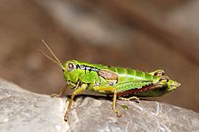 - ^ a b Chintauan-Marquier, Ioana C.; Jordan, Steve; Berthier, Pierre; Amédégnato, Christiane; Pompanon, François (2011). "Evolutionary history and taxonomy of a short-horned grasshopper subfamily: The Melanoplinae (Orthoptera: Acrididae)". Molecular Phylogenetics and Evolution. 58 (1): 22–32. doi:10.1016/j.ympev.2010.07.003. PMID 20643218.