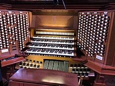 The organ was originally built by Hill & son (of England) in 1872 before a fire destroyed it in 1925. A new organ constructed by Hill Norman & Beard was installed in 1929 and has since then been rebuilt and enlarged by Schantz Organ Company of the United States of America from 1995 to 2001 at a cost of $4.5 million.[9] The rebuild included 2 new floating divisions (Fanfare & Bombarde), many new voices and a secondary moveable console