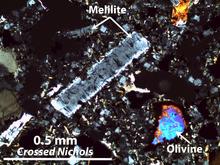 Melilite is a constituent of some calcium- and aluminium-rich inclusions (CAIs) in chondritic meteorites.[4] Isotope ratios of magnesium and some other elements in these inclusions are of great importance in deducing processes that formed our solar system.