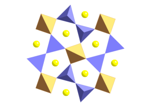 Some other compositions with the melilite structure include: alumoåkermanite (Ca,Na)2(Al,Mg,Fe2+)(Si2O7), okayamalite Ca2B[BSiO7], gugiaite Ca2Be[Si2O7], hardystonite Ca2Zn[Si2O7], barylite BaBe2[Si2O7], andremeyerite BaFe2+2[Si2O7]. Some structures formed by replacing one oxygen by F or OH: leucophanite (Ca,Na)2(Be,Al)[Si2O6(F,OH)], jeffreyite (Ca,Na)2(Be,Al)[Si2O6(O,OH)], and meliphanite (Ca,Na)2(Be,Al)[Si2O6(OH,F)]