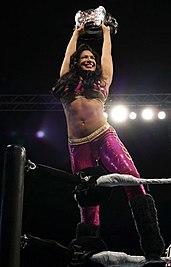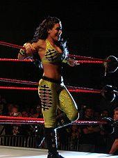 In 2000, Perez began training to be a professional wrestler at Jesse Hernandez's School of Hard Knocks, and made her debut in 2001.[7] In late 2002, Perez auditioned for WWE's reality show Tough Enough III, but was eliminated in first round,[5][8][9][10] and was inspired by Al Snow to continue pursuing her wrestling career.[11] In March 2004, Perez signed a contract with WWE, and was assigned to Ohio Valley Wrestling (OVW), WWE's developmental territory,[2] where she began managing Johnny Nitro and Joey Mercury, dubbed MNM, to three reigns as WWE Tag Team Champions,[12] as well as Nitro to two reigns as WWE Intercontinental Champion.[2][13][14] Perez is a three-time WWE Women's Champion,[15][16] and a two-time WWE Divas Champion.[17][18] After winning her second WWE Divas Championship, Perez became the first woman in WWE history to become a multiple-time champion with both the Women's and Divas titles.[19] Famed for her flexibility, utilized during her entrance and in her in-ring maneuvers, Perez was called "one of the best wrestlers in the world" by Bret Hart, and cited by WWE as having "perhaps the most impressive arsenal of offensive maneuvers in Diva history."[20]
