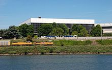 Financed by an $8 million bond approved by voters in 1954, construction was completed by Hoffman Construction in 1960 and dedicated on January 8, 1961, to the "advancement of cultural opportunities for the community and to the memory of our veterans of all wars who made the supreme sacrifice." The facility is 100-foot (30 m) tall and has a footprint of about 3.1 acres (1.3 ha). It is sometimes referred to as "The Glass Palace" in Portland.[15] The building was designed by architecture firm Skidmore, Owings & Merrill.[16]