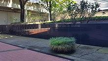 The war memorial consists of two black granite walls below ground level and near the main gate. The names of the dead are inscribed in gold paint, now faded with age. There are no dates given, only the names and an inscription: "To the memory of a supreme sacrifice we honor those who gave their lives for God, principle and love of country".