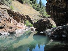 The infamous Rattlesnake Fire occurred here in 1953. One Forest Service employee and 14 volunteer firefighters perished. The circumstances of the tragedy resulted in major changes in firefighting strategy and training.[8] The firefighters are memorialized at the Rattlesnake Fire Memorial overlooking Rattlesnake Canyon. Access to it can be found off of Forest Highway 7 on County Road 307/Alder Springs Road.