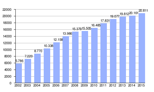 Since its days as a butcher shop in 1977, Mercadona expanded to eight stores in 1981 and 1,148 stores as of October 2013 with more on the way. Today it holds 13.5% of Spain's total food retail space[6] and brought in more than €508 million in profits for the 2012 fiscal year.[7]