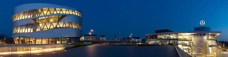 ![]() Mercedes-Benz Museum in Stuttgart, Germany, during blue hour. |