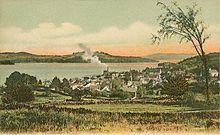 Farmers grew corn, wheat, rye and potatoes, but the area became noted for apple orchards. The outlet of Lake Waukewan provided water power sites, and by 1859 Meredith village had a sawmill, gristmill, shingle mill, blacksmith shop, harness-maker's shop and tannery. Situated at the outlet of Wickwas Lake, Meredith Center had a sawmill, gristmill and blacksmith shop. Connected by the Boston, Concord & Montreal Railroad in March 1849, the town became a summer resort. Passengers also arrived from the Alton Bay depot aboard steamboats, the most famous of which was the original SS Mount Washington, launched in 1872. Meredith remains a popular tourist destination.