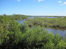Merritt Island National Wildlife Refuge is located due east of Titusville on Merritt Island in Brevard County, Florida, and occupies 140,000 acres (570 km2), overlaid with the Kennedy Space Center. To the north, it borders on the Canaveral National Seashore; to the south it encompasses non-public portions of the Kennedy Space Center (with which it also shares some history), which in turn abuts Cape Canaveral Space Force Station. Mosquito Lagoon and the Indian River run through the refuge.[1] Since public access to all these areas is controlled in various ways, the refuge is part of a very substantial area of relatively undisturbed wildlife habitat.