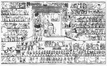 The tomb of Meryra II is the royal sepulcher known as Amarna Tomb 2. The tomb dates back to the 18th Dynasty.[3] It is located in the northern side of the wadi that splits the cluster of tombs known collectively as the Northern tombs, near to the city of Amarna, Egypt.[4] The tomb has been largely destroyed. It was decorated with the last dated appearance of Akhenaten and the Amarna family, dating from the second month, year 12 of his reign.[2] Norman de Garis Davies originally published details of the tomb in 1905.[3]