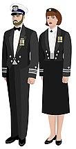 Officers and chief petty officers of the U.S. Navy, U.S. Coast Guard, United States Public Health Service Commissioned Corps, NOAA Corps, and Merchant Marine use the same mess uniform, referred to as "dinner dress". There are three styles of this uniform—dinner dress, dinner dress jacket, and tropical dinner dress.