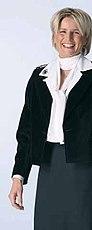 For women, mess dress currently consists of the same style high-waisted blue-grey single-breasted jacket and white marcella shirt as men, a small bow tie and cummerbund, and a straight ankle-length blue-gray skirt, worn with patent-leather court shoes and barely-black tights or stockings. Unlike the gentlemen officers' jacket, which has a pointed lapel, the ladies' jacket features a shawl collar. From the 1970s and prior to the introduction of current women's mess dress in 1996, female officers wore a royal blue Empire line dress made of crimplene material with a loose mandarin neck, long sleeves, and an ankle length hem. Rank was indicated on a small enamelled brooch worn near the neck.
