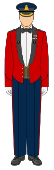 - Mess undress (No. 8) – mess jacket, plain trousers, blue waistcoat, black bow tie, cap