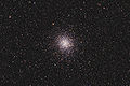 Messier 22 or M22, also known as NGC 6656, is an elliptical globular cluster of stars in the constellation Sagittarius, near the Galactic bulge region. It is one of the brightest globulars visible in the night sky. The brightest stars are 11th magnitude, with hundreds of stars bright enough to resolve with an 8" telescope.[10] It is just south of the sun's position in mid-December, and northwest of Lambda Sagittarii (Kaus Borealis), the northernmost star of the "Teapot" asterism.