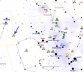 - ^ In a mildly south part of this zone of the sky, +90 declination would give a zenith above the north pole, whereas minus 22 degrees (rounded) precludes it from rising therefore (being above the horizon) at the 68th parallel north and hampers visibility at lower latitudes nearby