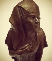 Fuller exhibited at the Pennsylvania Academy of the Fine Arts in 1920. She created one of her most famous works, Ethiopia (also known as Ethiopia Awakening), for America's Making Exhibition in 1921.[27] This event was meant to highlight immigrants' contributions to US artistic society and culture. This sculpture was featured in the exhibition's "colored section," and it symbolized a new black identity that was emerging through the Harlem Renaissance. It represented the pride of African Americans in African and black heritage and identity.[28] Ethiopia, drawn from Egyptian sculptural concepts, is an academic sculpture of an African woman emerging from a mummy's wrappings, like a chrysalis from a cocoon, represented her statement on black consciousness globally. Fuller made multiple versions of Ethiopia, including a small maquette with the figure's left hand projecting from its body (now lost) and two full-size bronze casts, one with the left hand projecting and a second made incorrectly, with the left hand flush to the figure's side.[27]