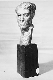 - Refugee, sculpture, c. 1940. Hunched male figure with a cane in his hand[34]