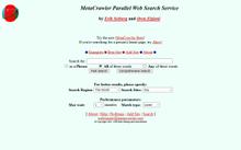 MetaCrawler was originally developed in 1994 at the University of Washington by graduate student Erik Selberg and Professor Oren Etzioni as Erik Selberg's Ph.D. qualifying project.[1] Originally, it was created in order to provide a reliable abstraction layer to web search engine programs in order to study semantic structure on the World Wide Web. However, it was a useful service in its own right, and had a number of research challenges. MetaCrawler was not, however, the first metasearch engine on the World Wide Web. That feat belongs to SavvySearch, developed at the Colorado State University, albeit launched just four months prior to MetaCrawler.[2]