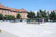 Another example of the ambiguity in state and municipality actions towards the Network for Metelkova and Metelkova itself are the subsidies from Ljubljana’s city administration for the construction of a little summer lodge also known as the Small School (from the Slovene: Mala Šola).[2] Nevertheless, the lodge, planned and constructed in 2001 by volunteers,[3] was immediately defined as abusive. In fact, the construction was followed by the request of its demolition, right after another municipal office reported it to the State Inspectorate for the Environment and Spatial Planning.[2] After several failed attempts, the building was demolished on August 2, 2006.[2] Although there are plans to rebuild the building, it has not been reconstructed since then.[2]