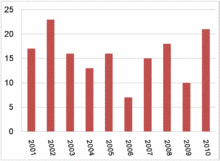 - ^ U.S. Bureau of Transportation Statistics (2010). National Transportation Statistics. Table 2-1: Transportation Fatalities by Mode (Report). Archived from the original on May 24, 2012. Retrieved May 11, 2011.