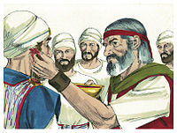 Similarly, a Midrash taught that skin disease resulted from 10 sins: (1) idol-worship, (2) unchastity, (3) bloodshed, (4) the profanation of the Divine Name, (5) blasphemy of the Divine Name, (6) robbing the public, (7) usurping a dignity to which one has no right, (8) overweening pride, (9) evil speech, and (10) an evil eye. The Midrash cited as proofs: (1) for idol-worship, the experience of the Israelites who said of the Golden Calf, "This is your god, O Israel," in Exodus 32:4 and then were smitten with leprosy, as reported in Exodus 32:25, where "Moses saw that the people had broken out (parua, פָרֻעַ)," indicating that leprosy had "broken out" (parah) among them; (2) for unchastity, from the experience of the daughters of Zion of whom Isaiah 3:16 says, "the daughters of Zion are haughty, and walk with stretched-forth necks and ogling eyes," and then Isaiah 3:17 says, "Therefore will the Lord smite with a scab the crown of the head of the daughters of Zion"; (3) for bloodshed, from the experience of Joab, of whom 2 Samuel 3:29 says, "Let it fall upon the head of Joab, and upon all his father's house; and let there not fail from the house of Joab one that hath an issue, or that is a leper," (4) for the profanation of the Divine Name, from the experience of Gehazi, of whom 2 Kings 5:20 says, "But Gehazi, the servant of Elisha the man of God, said: ‘Behold, my master has spared this Naaman the Aramean, in not receiving at his hands that which he brought; as the Lord lives, I will surely run after him, and take of him somewhat (me'umah, מְאוּמָה)," and "somewhat" (me'umah, מְאוּמָה) means "of the blemish" (mum, מוּם) that Naaman had, and thus Gehazi was smitten with leprosy, as 2 Kings 5:20 reports Elisha said to Gehazi, "The leprosy therefore of Naaman shall cleave to you"; (5) for blaspheming the Divine Name, from the experience of Goliath, of whom 1 Samuel 17:43 says, "And the Philistine cursed David by his God," and the 1 Samuel 17:46 says, "This day will the Lord deliver (sagar, סַגֶּרְ) you," and the term "deliver" (סַגֶּרְ, sagar) is used here in the same sense as Leviticus 13:5 uses it with regard to leprosy, when it is says, "And the priest shall shut him up (סַגֶּרְ, sagar)"; (6) for robbing the public, from the experience of Shebna, who derived illicit personal benefit from property of the Sanctuary, and of whom Isaiah 22:17 says, "the Lord . . . will wrap you round and round," and "wrap" must refer to a leper, of whom Leviticus 13:45 says, "And he shall wrap himself over the upper lip"; (7) for usurping a dignity to which one has no right, from the experience of Uzziah, of whom 2 Chronicles 26:21 says, "And Uzziah the king was a leper to the day of his death"; (8) for overweening pride, from the same example of Uzziah, of whom 2 Chronicles 26:16 says, "But when he became strong, his heart was lifted up, so that he did corruptly and he trespassed against the Lord his God"; (9) for evil speech, from the experience of Miriam, of whom Numbers 12:1 says, "And Miriam . . . spoke against Moses," and then Numbers 12:10 says, "when the cloud was removed from over the Tent, behold Miriam was leprous"; and (10) for an evil eye, from the person described in Leviticus 14:35, which can be read, "And he that keeps his house to himself shall come to the priest, saying: There seems to me to be a plague in the house," and Leviticus 14:35 thus describes one who is not willing to permit any other to have any benefit from the house.[47]