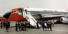 The original site, known as Llanos de Balbuena, had been used for aeronautical activities since 1910, when Alberto Braniff became the first to fly an aeroplane in Mexico, and in Latin America.[9][10] The flight was onboard of a Voisin biplane. On November 30, 1911, President Francisco I. Madero, was the first head of State in the world to fly onboard of a Deperdussin airplane piloted by Geo M. Dyott of Moisant International.[11][12] In 1915 the airport first opened as Balbuena Military Airport with five runways. Construction of a small civilian airport began in 1928. The first landing was on November 5, 1928, and regular service started in 1929, but was officially inaugurated on May 15, 1931. On July 8, 1943, the Official Gazette of the Federation published a decree that acknowledged Mexico City's Central Airport as an international airport, capable of managing international arrivals and departures of passengers and aircraft. Its first international route was to Los Angeles International Airport operated by Mexicana. Construction of Runway 05D-23I started six years later, as well as new facilities such as a platform, a terminal building, a control tower and offices for the authorities. The runway started its operations in 1951. On November 19, 1952, President Miguel Alemán opened the passenger terminal, which later became Terminal 1.[13]