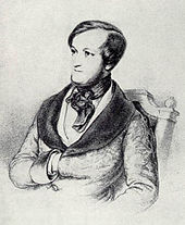 Letellier describes Meyerbeer's mature life as 'a tale of two cities...His artistic triumph and legendary status were achieved in Paris...but he never abandoned Prussia, especially his home city of Berlin'.[38] His wife Minna was based in Berlin (she did not enjoy Paris) as was his beloved mother; and he had a series of Royal duties from the Prussian court, stemming from his appointment as Court Kapellmeister in 1832.[39][40] For these reasons his life from 1830 onwards is characterised by travel between these two centres.