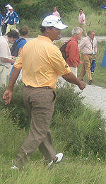 In the tournament itself, Campbell ended the third round four strokes behind Retief Goosen, the event's defending champion. On the final day, Goosen ballooned to an 81. Campbell shot 69 (1 under par) for the final round and was the only golfer in the last two pairings of the day to break 80. Campbell's main competition turned out to be Tiger Woods,[6] who at one point closed to within one shot of Campbell.