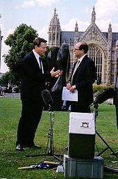After the election, Portillo renewed his attachment to Kerr-McGee, but also undertook substantial media work, including programmes for the BBC and Channel 4. In an interview with The Times given in the summer of 1999, Portillo said that "I had some homosexual experiences as a young person."[43] A few weeks after he had given that interview, the death of Alan Clark gave Portillo the opportunity to return to Parliament, despite Lord Tebbit accusing Portillo of lying about the extent of his sexual "deviance",[44] and similar comments from an associate included in a profile of Portillo in The Guardian newspaper.[45] He comfortably won the by-election in late November 1999 to represent Kensington and Chelsea, traditionally one of the safest Conservative seats.