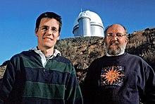 Together with Didier Queloz in 1995, he discovered 51 Pegasi b, the first extrasolar planet orbiting a sun-like star, 51 Pegasi.[5] For this achievement, they were awarded the 2019 Nobel Prize in Physics "for the discovery of an exoplanet orbiting a solar-type star".[6] Related to the discovery, Mayor noted that humans will never migrate to such exoplanets since they are "much, much too far away ... [and would take] hundreds of millions of days using the means we have available today".[7] However, due to discoveries by Mayor, searching for extraterrestrial communications from exoplanets may now be a more practical consideration than thought earlier.[8]