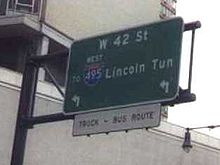 Plans for I-495 called for it to extend across Manhattan on the Mid-Manhattan Expressway to the Lincoln Tunnel, which it would follow into New Jersey and connect to I-95 in Secaucus. The I-495 designation was assigned to the New Jersey approach to the tunnel in anticipation of the Mid-Manhattan Expressway being completed.[42] However, the project was cancelled and the Mid-Manhattan Expressway was officially removed from I-495 on January 1, 1970.[92] The New Jersey stretch of I-495 became New Jersey Route 495 in 1979.[93]