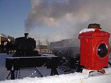 The first of the company's own locomotives was delivered from Hudswell Clarke at the beginning of November 1904; it was an 0–6–0 tank engine, numbered 1 and named Haughley. It had been available for opening day, but the manufacturers were suspicious of the Company's ability to pay, and they did not release it at first.[2][3] Some goods wagons arrived later. A second locomotive was delivered in March 1905.[1] Goods stations were located at Mendlesham, Aspall, Kenton, Horham and Stradbroke, and later at Old Newton, Brockford, Worlingworth and Wilby. Use of the line for cattle traffic in the Laxfield area had a noticeable adverse effect on GER traffic at Framlingham,[note 1] which had been used as a railhead for cattle traffic previously.[2]