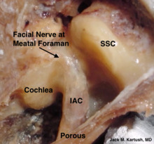It houses the temporal lobes of the brain and the pituitary gland.[1] A middle fossa craniotomy is one means to surgically remove acoustic neuromas (vestibular schwannoma) growing within the internal auditory canal of the temporal bone.