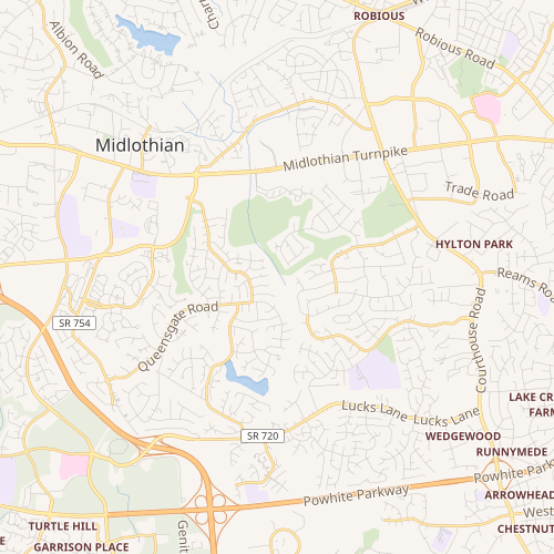 Midlothian, Virginia (/mɪdˈloʊθiən/) is an unincorporated area in Chesterfield County, Virginia, U.S. Settled as a coal town, Midlothian village experienced suburbanization effects and is now part of the western suburbs of Richmond, Virginia south of the James River in the Greater Richmond Region.[4] Because of its unincorporated status, Midlothian has no formal government, and the name is used to represent either the original small Village of Midlothian, located on Midlothian Turnpike (US-60) between Old Buckingham Road and Salisbury Drive, or a vast expanse of Chesterfield County in the northwest portion of Southside Richmond covered by three zip codes (23112, 23113, 23114) served by the Midlothian post office. These zip codes are not coterminous with the Midlothian Magisterial District associated with the Chesterfield County government.