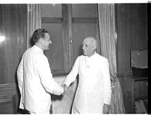 In 1953, Serrano—following a number of other family members—joined the Chilean diplomatic corps.[9] He hoped to gain a posting to India, a land which he considered to be a source of great spiritual truths. He was successful in this, and remained in India until 1962. In this period, he visited many Hindu temples and searched for evidence of the secretive Brahmanical order into which F. K. had alleged initiation.[9] In his role as a diplomat, he met various prominent figures, including Jawaharlal Nehru, Indira Gandhi, and the 14th Dalai Lama.[9] It was while in India that he wrote and published two books: The Visits of the Queen of Sheba (1960), which had a preface by Jung, and The Serpent of Paradise (1963), which discussed his experiences in the country.[9] Serrano had engaged in further correspondence with Jung between 1957 and 1961.[10] In 1965 his book, C. J. Jung and Hermann Hesse: A Record of Two Friendships, was published.[10]