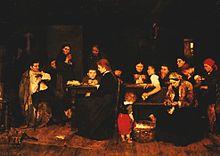 In 1869, Munkácsy painted his much acclaimed work The Last Day of a Condemned Man, considered his first masterpiece. The picture was rewarded with the Gold Medal of the Paris Salon in 1870.[3] It made Munkácsy a popular painter in an instant. It suggests torture caused by oppression, moral uncertainty and reactions to an impending tragic end in visual form. However, it aptly captures the capabilities of the Hungarian master in painting.