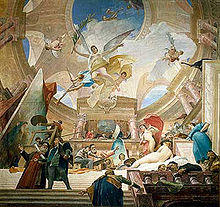 He was commissioned to paint the large ceiling painting of the Kunsthistorisches Museum in Vienna. The work, completed in 1888, was titled Glorification of the Renaissance.