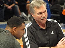 Although Steve Kerr requested he stay with the Suns, D'Antoni was told that he was free to speak with other teams about coaching jobs.[12] On May 9, D'Antoni was made an offer by the New York Knicks.[13] The next day, he accepted the 4-year, $24 million offer and became the Knicks' head coach.[14][15]