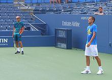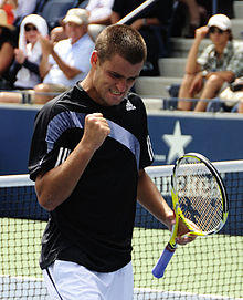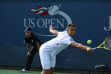 Youzhny began the 2011 season at the Australian Open where he reached the third round, losing to Canadian qualifier Milos Raonic in four sets. He made his next appearance at the 2011 ABN AMRO World Tennis Tournament in Rotterdam, but failed in protecting his points from the previous year, and lost to world number four Robin Söderling.[55] He responded to his early loss with a semifinal showing at the Open 13 in Marseille, France, and lost to world number twenty-eight Marin Čilić.[55] At the Dubai Tennis Championships he again failed to defend his ranking points, and recorded his first loss to Gilles Simon.[55] In doubles, he and Sergiy Stakhovsky went on to defeat Feliciano López and Jérémy Chardy in the final to win their second title as a team and Youzhny's eighth career doubles title.[56] From his defeat by Simon in Dubai to the French Open, with the exception of one third round defeat, he lost either in the first or second round.[55] Youzhny was seeded 12th at the French Open, and lost in the third round to world number thirty-eight Albert Montañés, a Spanish clay-court specialist, in straight sets.[55] At Wimbledon Youzhny, seeded 18th, reached the fourth round where he was defeated by world number three Roger Federer in four sets.[57] Between Wimbledon and the US Open, Youzhny reached two semifinals. At the first, at the International German Open in Hamburg, he lost to Gilles Simon, and at the second, the Crédit Agricole Suisse Open Gstaad in Switzerland, he lost to world number forty-five Marcel Granollers.[55] Youzhny was seeded 16th at the US Open, but lost in the first round to world number fifty-three Ernests Gulbis in the first round.[58] His early upset at the US Open saw him slip from world number fifteen to world number thirty-two.[5] Despite being the defending champion of the Proton Malaysian Open Youzhny decided not to participate.[55] His first post-US Open tournament was the China Open in Beijing, where he reached the quarterfinals, but lost to world number twenty-six Ivan Ljubičić.[55] He reached his last semifinal of the season at the St. Petersburg Open, losing to world number twenty-two Marin Čilić, the eventual champion.[55] Youzhny ended the season with a 27–23 win-loss record,[55] and with an end-of-year rank of 35 in the world.[5]
