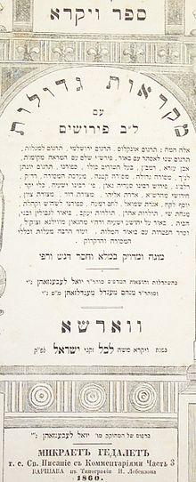 - ^ Mikraot Gedolot: Vayikra (in Hebrew and Aramaic). Vilna: Romm Publishing House. 1899. Retrieved 23 July 2013.