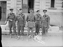 Enjoying his time at the Staff College, Dempsey's first posting after Camberley was as a General Staff Officer Grade 3 (GSO3) to the Military Secretary, where he became responsible for the careers of all officers below the rank of colonel, having access to their annual confidential reports. Dempsey, by now a major (having been promoted in September 1932),[1] held this post until late January 1934, when he handed over to Brian Horrocks upon receiving an appointment as brigade major of the 5th Infantry Brigade.[35] The brigade, commanded by Brigadier Victor Fortune (Francis Nosworthy from 1935), formed part of the 2nd Division, then commanded by Major General Archibald Wavell, was serving in Aldershot Command and took part in numerous large-scale military manoeuvres throughout Dempsey's time as brigade major and, after handing over again to Brian Horrocks in February 1936, he returned to the 1st Battalion of his regiment, taking command of HQ Company.[36] The battalion, then stationed in Shorncliffe, Kent, was serving as part of the 10th Brigade of the 4th Division, and shortly after Dempsey's return, the battalion was commanded by Lieutenant Colonel Eric Miles.[37] The following year Dempsey attended a brief course at the Senior Officers' School at Sheerness, before being posted to South Africa, where he served as a GSO2 with the Defence Forces of the Union of South Africa, a posting which he enjoyed.[1] Relinquishing that post in late January 1938, he returned to England soon after to succeed Miles as Commanding Officer (CO) of the 1st Battalion, Royal Berkshires, and receiving a promotion to lieutenant colonel.[38] The battalion, still with the 10th Brigade, was both lacking in modern equipment and severely understrength, although, with the possibility of another war in Europe, the situation slowly changed and new equipment and reservists began arriving.[39]