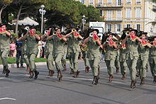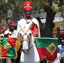 The Armed Forces of Senegal is represented by a joint services band which, unlike the Red Guard mounted band, has a repertoire of a mix between Senegalese folk and classical music. This band was created in 1961 at the time of the founding of the armed forces and the independence of the country. The main music of the Senegalese Armed Forces was at the time formed by a majority of newly recruited young people with no musical knowledge. It was then necessary to count on the Captain Jean Avignon who directed, for 12 years, the Paris-based Musique des Troupes de Marine. Its official duties were prescribed in November 1981.[25] The Senegalese Gendarmerie also maintains its own fanfare band.[26]